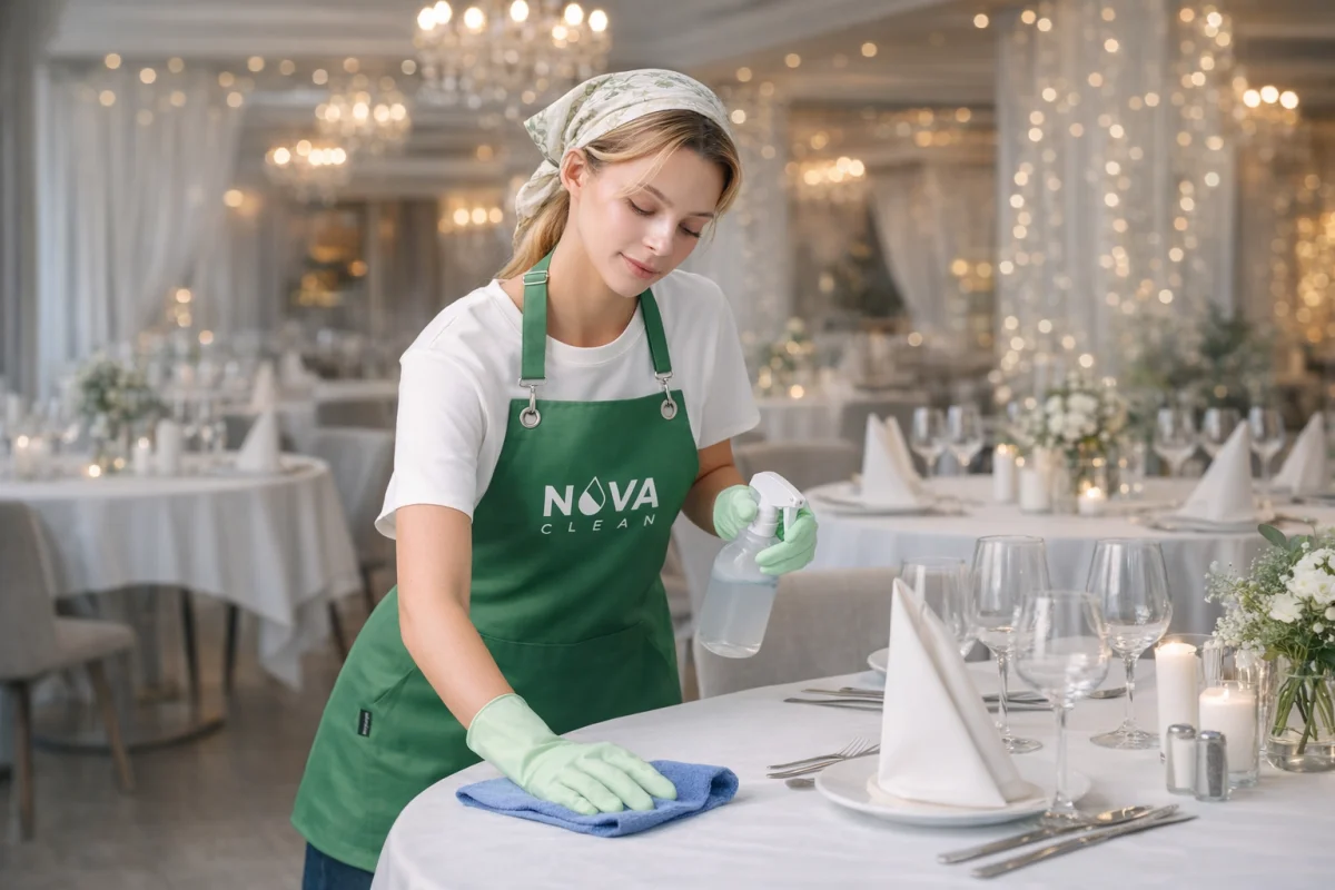 Я управляю рестораном на 260 м², и после большого банкета в субботу утром было ощущение, что мы не откроемся. Нова приехали командой из 4 человек ровно к 6:30, как договаривались. За 4 часа привели в порядок зал, барную стойку, санузлы и проходы на кухню: липкие пятна от напитков убрали без следов, стулья протерли, стекла и зеркало в туалете — без разводов. Вежливо общались, ничего не «клянчили» сверху, по скорости и качеству нас реально выручили.